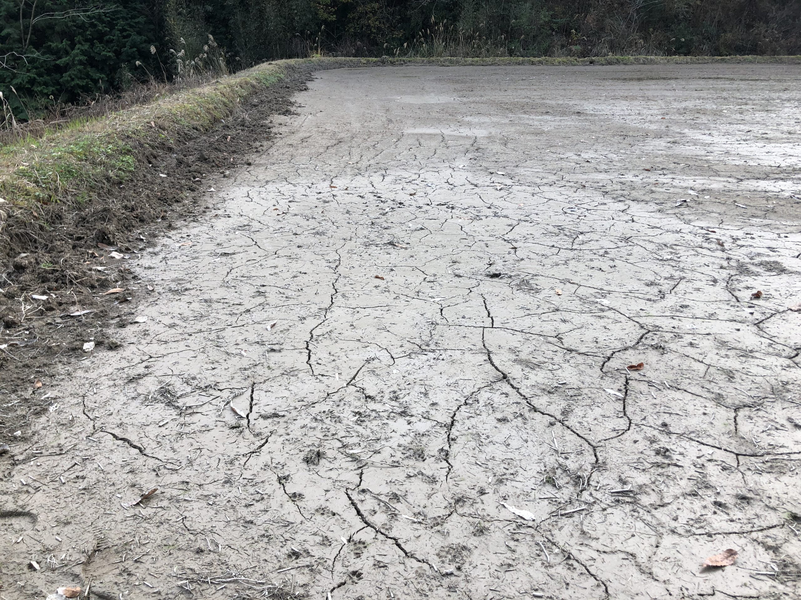 こんにちは。西予苔園です。 圃場の準備を進めていますが、前回しろかきを行って圃場全体を平坦に整地してから、圃場全体の乾燥をしています。 圃場の半分は日当たりが良く順調に乾いてくれています。