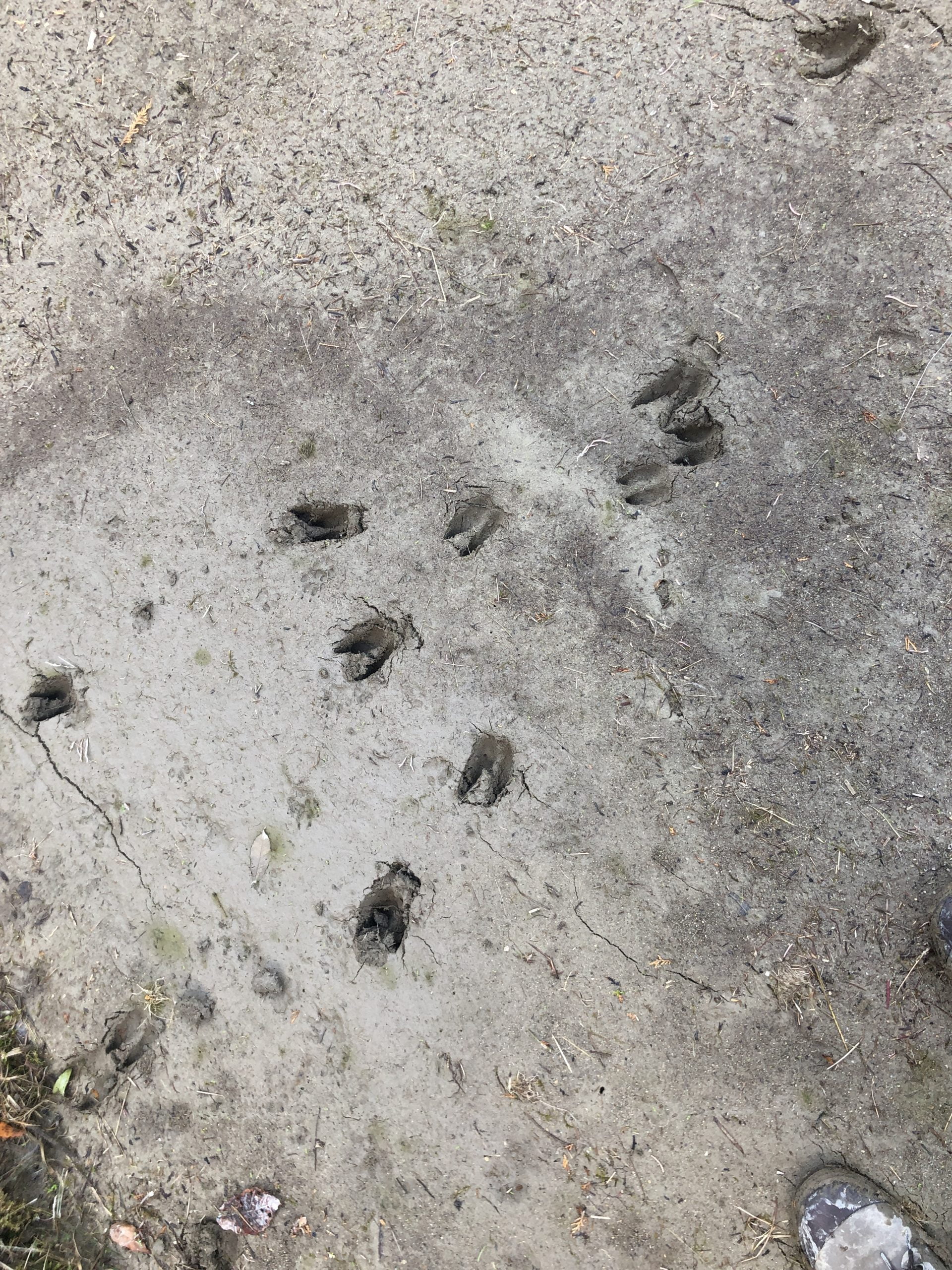 今日、圃場に来たら今までに無い存在感の足跡を発見。