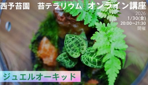 憧れのジュエルオーキッドの「マコデスペトラ」を使った苔テラリウムのオンライン講座、2026年1月30日(金)開催予定です。ぜひ一緒にオンラインで作品作りを楽しみましょう。